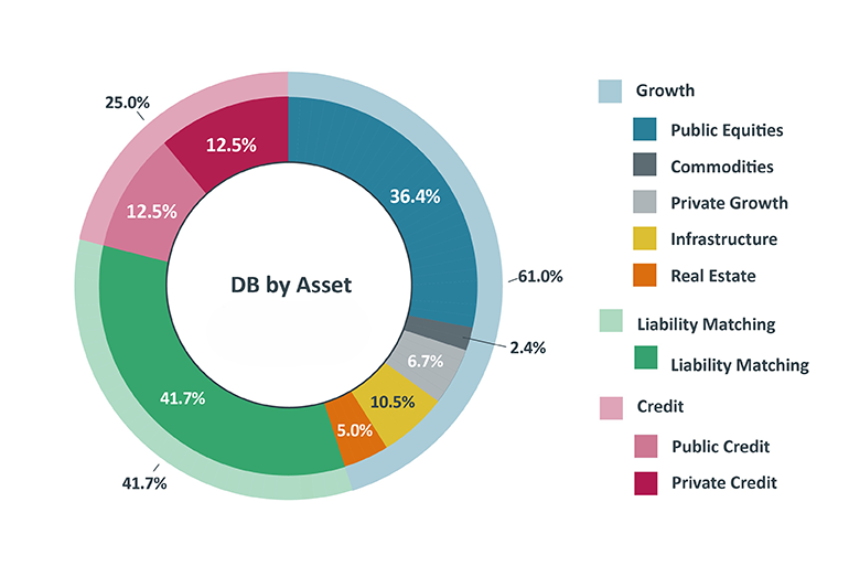 Our global Retirement Income Builder (DB) investments are split across three main categories – growth, credit and liability matching: